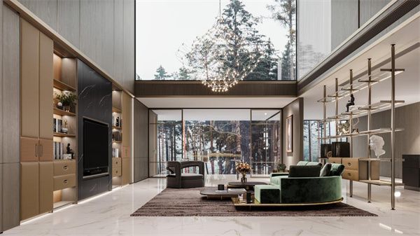 本次S系·凯旋以一个富有奢华韵味的别墅住宅设计项目参赛。设计师打破室内外空间的固有格局,联通户外自然环境与室内居住环境,运用丰富的皮纹、岩石、木纹、玻璃等元素,带给用户强烈的自然肌理冲击。