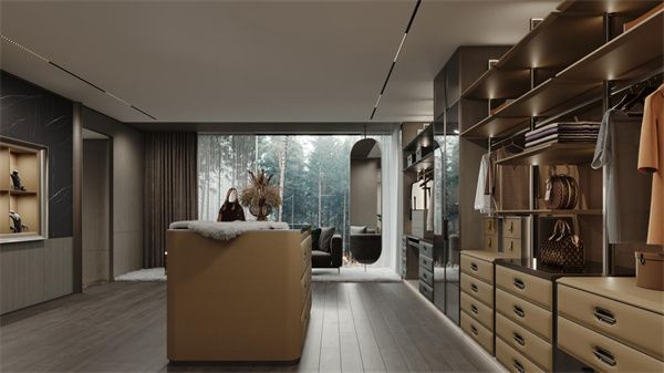 空间内置全面的智能模块,可智能调节室内温湿度、灯光效果、衣物护理、电动窗帘的模块,保障用户的舒适生活体验。