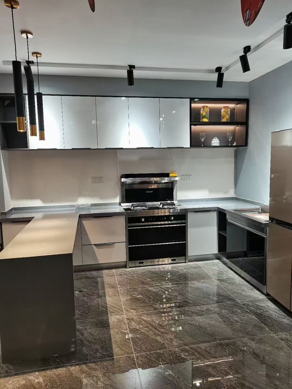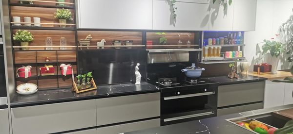 3、收纳问题要注意,由于开放式厨房是一览无余的,如果杂七杂八的摆放一起,观感不佳。因此需要设计收纳更科学的橱柜,存放分类有序,排放整齐。使用时方便拿取,不用时隐于柜内。