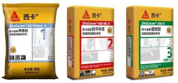 西卡宙斯岩板超强铺贴系统,涵盖三大块,界面剂、找平砂浆和瓷砖胶,通过正确的施工手法,可以确保岩板的安全铺贴。