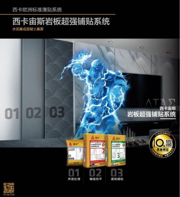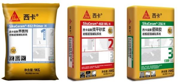 西卡宙斯岩板超强铺贴系统,涵盖三大块,界面剂、找平砂浆和瓷砖胶,通过正确的施工手法,可以确保岩板的安全铺贴。