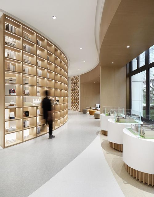 去除售楼化是目前的趋势,利用建筑的手法让空间与空间更为开阔,也让阻隔更少, 联系人与人之间的交流与感官,让参观的客人有更多的艺术与自然的体验感。以“山谷湖泊”作为空间意向,将自然形态引入室内,追寻大自然的曲线。让消费者进入空间后有种轻松自在感,犹如在艺术馆,博物馆,图书馆这样的空间,放下防备身心愉悦,在舒适的空间做出愉悦的交易。