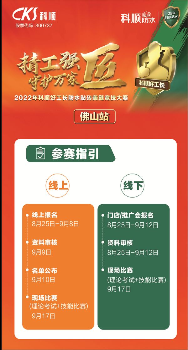 科顺好工长防水贴砖美缝竞技大赛-佛山站,报名开始了!