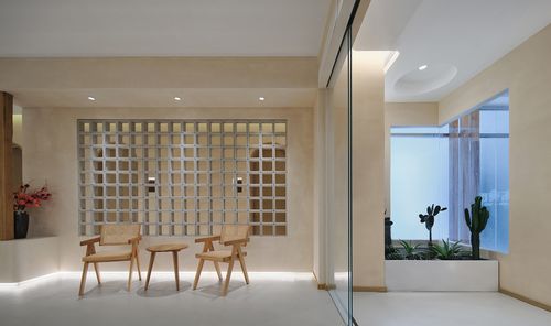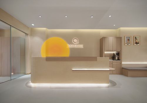 这次获奖作品我们做的和他之前的几家店面都不一样,更侧重于孕妇的一些需求,风格走的诧寂风,整体感觉很温润很静谧,能让人心情很平和很宁静,在材质的选择上面也非常严谨,微水泥加木质,确保环保,因为我们针对的是最脆弱的人群——孕妇加新生儿,在灯光方面也是一直推敲,所有的灯光都是防眩光的而且特别柔和,直视都不会感觉到刺眼,杜绝光污染。