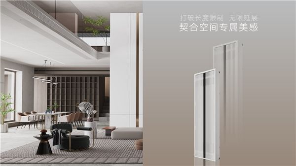 简约线型风口式外观设计,荣获德国iF奖。中央空调消毒净化机可按需定制不同颜色与长度,随心装点不同风格的室内环境。