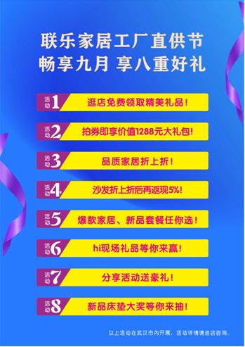 秉承匠心,品质家居实力保障!这个九月,联乐海量惊喜好礼等您来,赶紧行动起来吧!