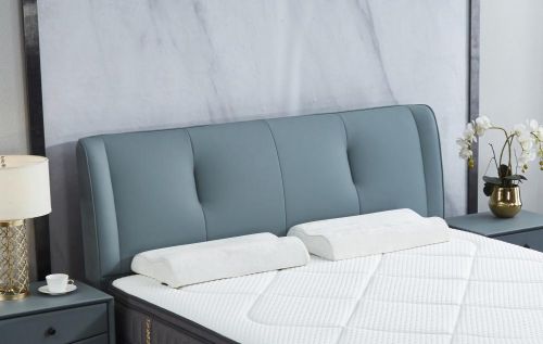 这款东宝软床采用轻奢风格设计,外观简约时尚。床屏表面凹凸有致,两翼微微翘起,动感十足。软床使用真皮包裹,不仅质感十足,摸上去也很光滑柔顺,带给肌肤亲和触感。