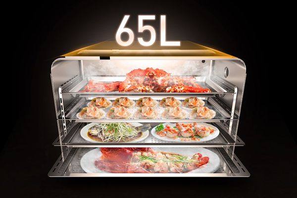 金帝月兔二号G901ZK蒸烤一体集成灶拥有65L的大容量,4层蒸烤架,一次性可以蒸烤6-7道菜,大鱼也可以容纳,不用斩断,十分贴心。配合燃气灶的煎炒,半个小时就可以做出一桌菜,效率很高。