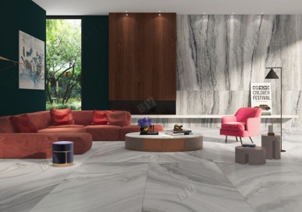采用多层釉料叠加工艺,完美复刻天然石材,纹理自然天成, 触感细腻丝滑,光折射柔和舒适,耐磨防滑。