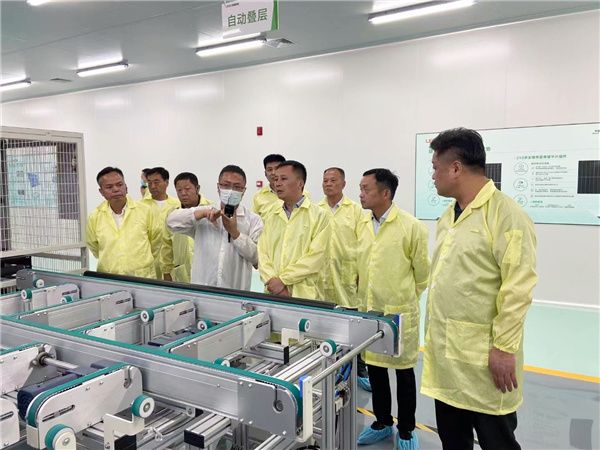 杨县长一行参观了广东联塑班皓新能源科技集团有限公司的生产车间,详细了解了光伏产品的生产流程。