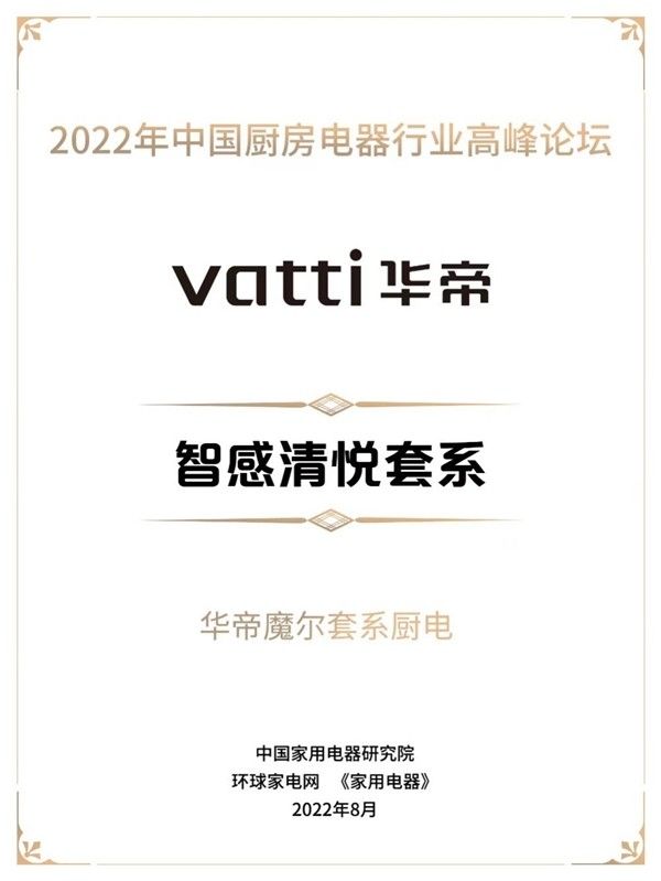 实力见证!华帝魔尔套系斩获2022中国厨房电器高峰论坛大奖