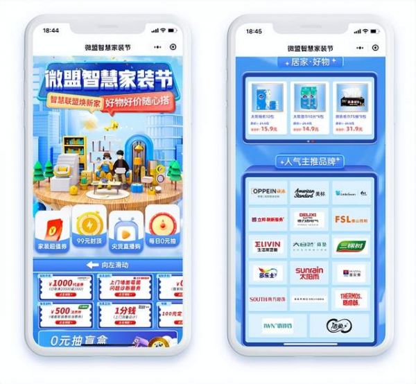 本次活动中,微盟为家装节全域造势曝光,各大品牌则以小程序商城为主阵地上线活动。品牌在各自的私域社群内进行推广,并通过“99元封顶专区”“0元抽盲盒”等营销玩法调动社群活跃度,让家装节关注度持续升温。