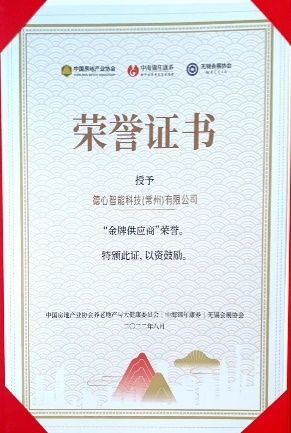 中国房地产业协会养老与大健康专业委员会、中海地产、太湖新城集团共建“康养供应链体系”资源库,德心智能科技(常州)有限公司成为了首批获得联合认定的企业之一,并获得金牌供应商荣誉。