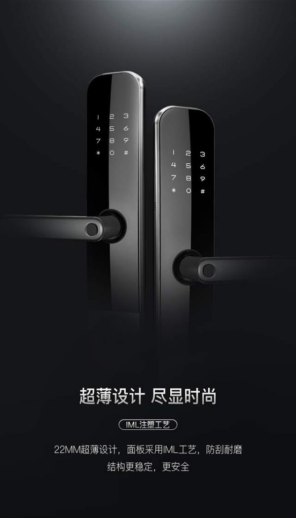这款W3的面板仅有22mm,使用的是IML工艺,使得这把锁非常的防刮耐磨。颜色有两款可选,我选的是百搭高级黑,非常的简约大气,还有一款红古铜也是沉稳大气,搭配任意入户门都妥妥的。
