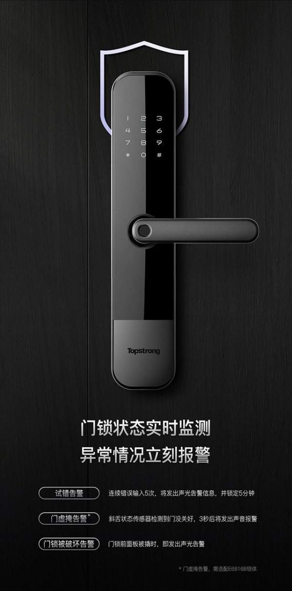 这款门锁的智能防御告警系统,更让我有了满满的安全感。密码连续输错5次,门锁会发出警告信息并锁定5分钟:如果传感器感应到门没关好,3秒后立刻发出声音报警,以及门锁面板被撬时,立即发出声光报警,这就意味着,无论门外发生什么突发状况,我都能在第一时间知道,并及时快速地做出反应。