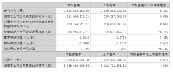华帝股份(002035.SZ)8月30日发布2022年半年度报告,公司报告期内营业收入28.03亿元,同比增长5.41%;归属于上市公司股东的净利润2.41亿元,同比增长0.89%;归属于上市公司股东的扣除非经常性损益的净利润2.28亿元,同比增长0.64%。