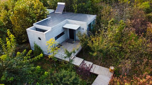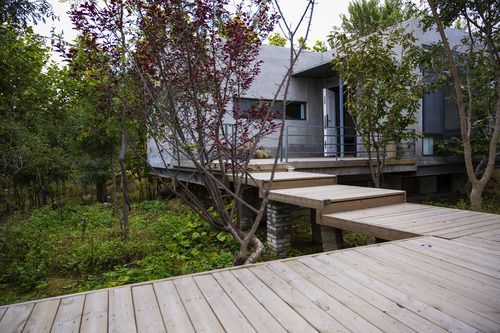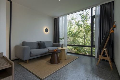 曹月泉:“见山民宿”坐落在河北封龙山黑水河镇黑水河村东南角的一片丛林里,背林面山环境宜人,是建筑、环境、室内、陈设一体化设计,设计定位为东方国际主义风格。