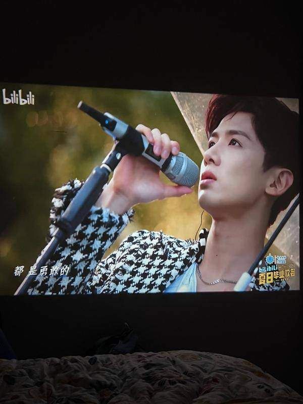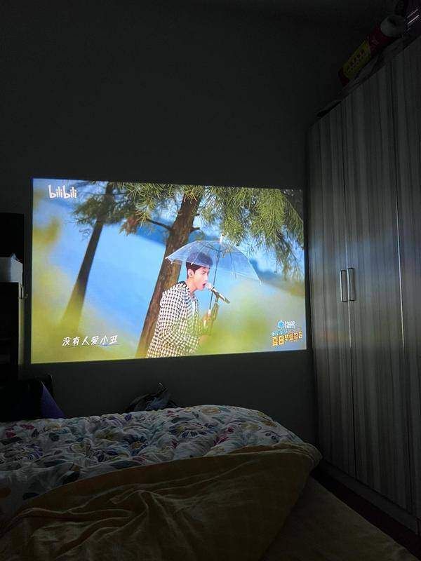 投屏范围很大,几乎占满了卧室的一面墙。亮度很不错,稍微开一点灯光也能看清楚,晚上效果会更好。一般白天也没什么时间看。