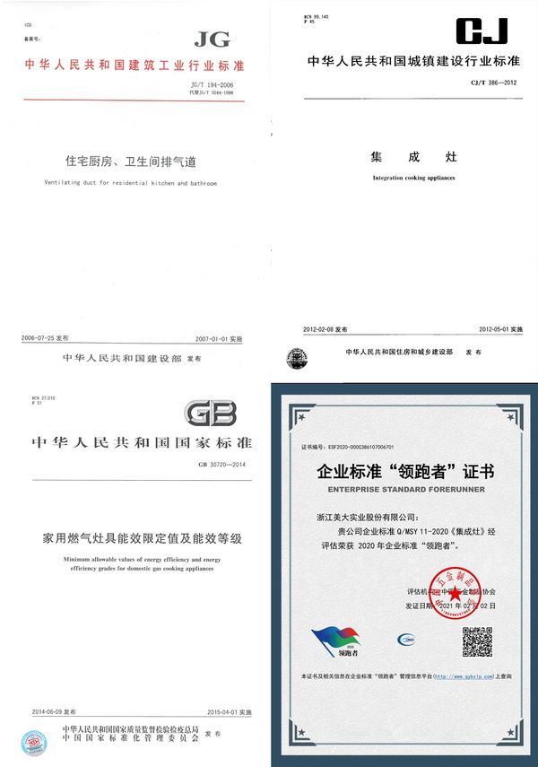 随着集成灶市场的推广,标准提上了议事日程。行业标准有助于增强行业的素质,提高行业的竞争力。对于集成灶的标准,作为行业开创者的美大,自然也居功至伟,美大起草了集成灶相关国家、行业标准,为行业发展奠定基础。