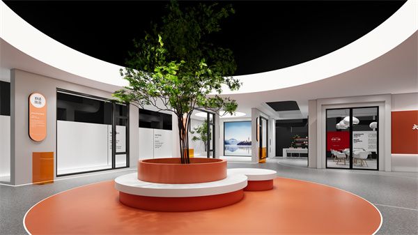 走近2022中国建博会(上海)派雅门窗「深舒适」空间体验馆,展馆四周以派雅最新LOGO形象环绕,68%的雅致红贯穿展馆内外,带来舒适的视觉体验。