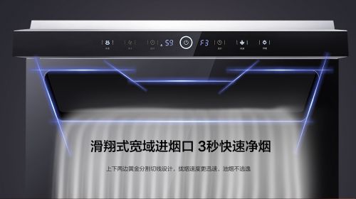 ◆上下两边黄金分割切线设计,搭载低空近吸技术,紧锁升腾油烟不上脸,拢烟速度更迅速。