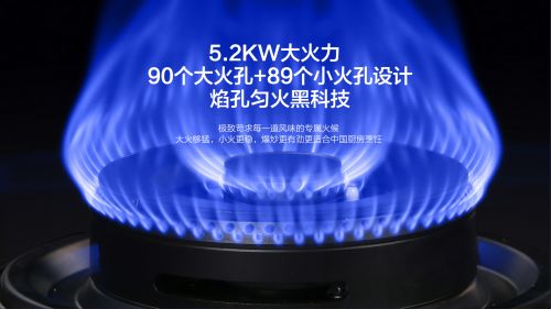 ◆5.2kW大火力,一级能效,更适合中国厨房烹饪,大火够猛,小火更稳,爆炒更有劲 !