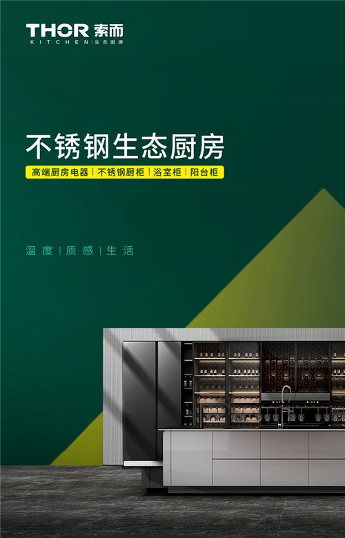 THOR索而作为全球新锐品牌,进入市场伊始,便提出有别于其他品牌的“生态厨房”理念,采用更环保的304不锈钢作为产品基材,遵循“温度·质感·生活”的理念,从生态厨房开始,启动索而生态星球计划,打造整家不锈钢定制生态链。