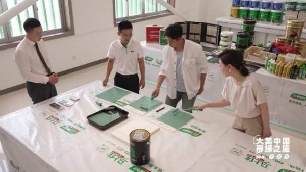 但想要成为一名合格的“粉刷匠”,需要经过多重考验。三棵树乳胶漆产品有多达1800种颜色,从选色到命名都融入了中国传统色彩文化的深厚底蕴。在体验“辨色”的过程中,武大靖最为倾心的“云霓翠”,也是三棵树“国漆国色”主推色之一。