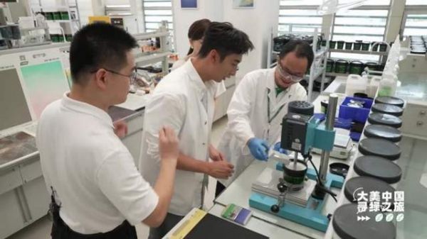 在艺术涂料配方实验室中,武大靖和常婷也在艺术涂料工程师未友国的指导下,体验了艺术涂料的研发调试过程,获得了别具风情的艺术涂料。三棵树研发的仿天然石材、敦煌彩壁、梦幻威尼斯等珠光艺术涂料,就是在此调配诞生,因其极具质感和肌理效果的时尚炫彩被诸多年轻人群所青睐。