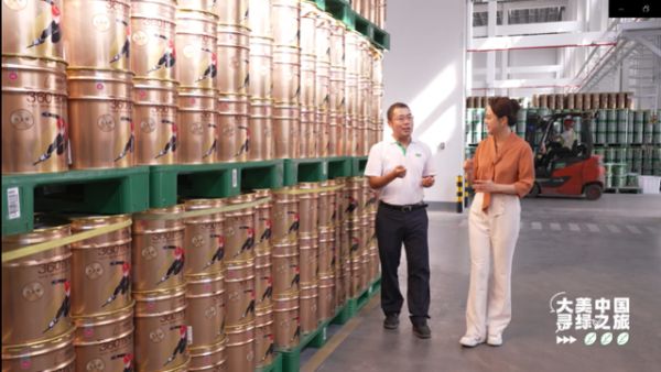 而在秀屿工厂,主持人黄鹤还与中国涂料工业协会会长孙莲英女士一起,参观了三棵树的绿色生产线。三棵树秀屿工厂副总经理洪俊凡表示,三棵树工厂最大的特点就是“智能化”和“清洁生产”,产品线高度智能化的清洁生产,稳定与可靠的品质,都被孙会长所称赞道。在此,三棵树产品负责人林金斌也为大家解答了如何设计、生产绿色涂料。