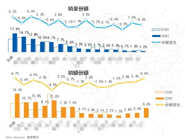 据行业数据机构奥维睿沃(AVC Revo)《中国大陆激光投影市场研究报告》显示,2022年上半年,在工程激光投影品牌格局中,光峰科技以销量份额17.9%、销额份额16.6%拿下双第一。此外,2022年半年虽然受到疫情反复的影响,但光峰科技出货量实现逆势增长,涨幅达24.7%。