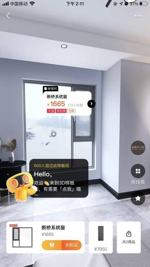 当消费者打开天猫,进入新豪轩家居旗舰店时,即可享受线上预约专属权益,例如在可选时段预约上门量尺、1V1专业设计、确定性交货期、高效送货安装等服务。通过线上线下融合,消费者得到的不仅是门窗定制的报价,还可通过3D样板间/短视频/直播/业主实拍案例等天猫新零售工具,进行360°沉浸式“云逛店”,满足线上互动体验。