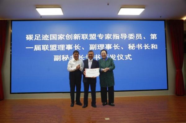 国家林草局科技司一级巡视员李世东为碳足迹国家创新联盟举行了授牌仪式。与会领导为联盟专家委员、第一届理事长、副理事长、秘书长和副秘书长颁发证书,并为第一届副理事长单位和联盟发起单位授牌将整个联盟成立大会推向了高潮。