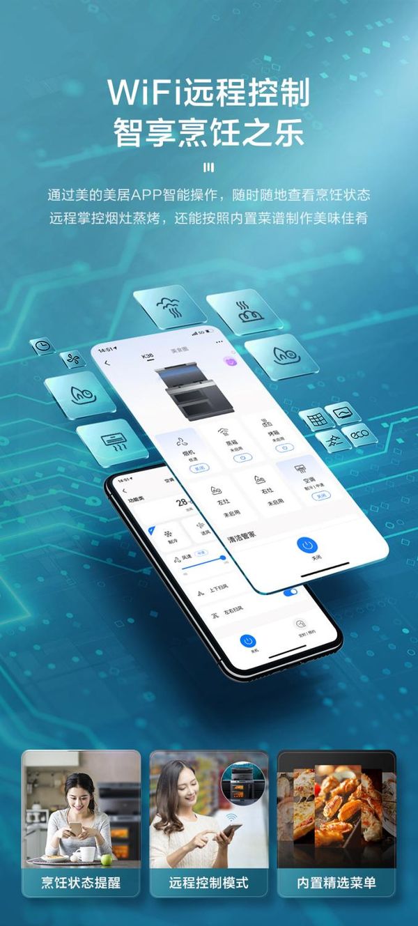 而基于“智慧美的”这一标签,美的新品K36可通过美的美居APP进行智能操作,随时随地查看烹饪状态,可手机远程控制蒸烤箱;内置多种菜谱供选择,真正做到了烹饪小白也能一秒变大厨。