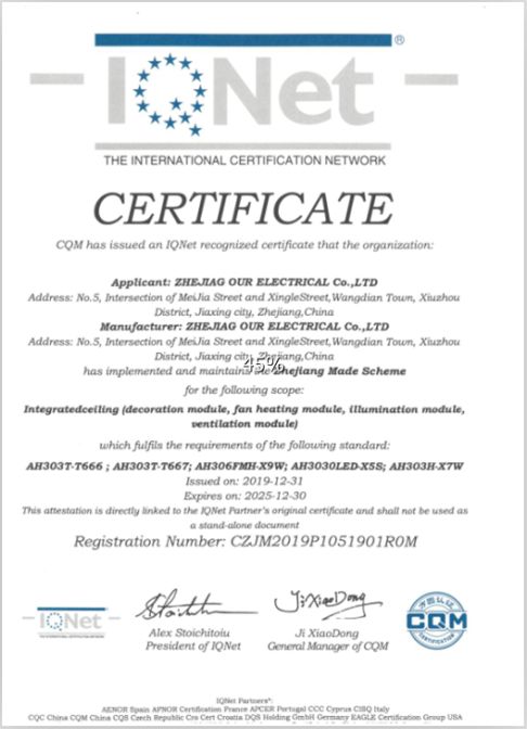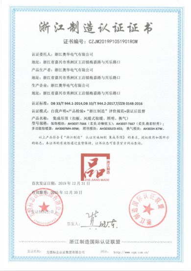 品质从来都不是靠说的,奥华是顶墙行业首家获得“浙江制造”及IQNET国际互认证书的企业,同时被授权可以使用浙江制造的“品”字标。能够获此殊荣的企业,是浙江制造业的“标杆”和“领导者”,是高品质、高水平的“代名词”。奥华能够获得“浙江制造”及IQNET国际互认证书,标志着奥华拥有行业领先的技术水平、优秀的管理水平和过硬的产品质量,进一步奠定了奥华在顶墙行业领军者的地位。