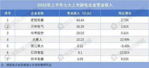 近日,包括老板电器、万和电气、华帝股份、浙江美大,火星人、亿田智能和帅丰电器等在内的共7家上市厨电企业2022年半年度报告已尽数披露。受疫情影响,加上原材料上涨、房地产市场放缓等,厨电企业能否抵抗住重重压力?在过去的2022上半年,四家净利下滑,帅丰电器垫底;通观七大上市厨卫企业的半年报,在对业绩增长助推因素的分析中,“数字化”成为热点词汇,与积极推进产品的数字化革新密切相关。