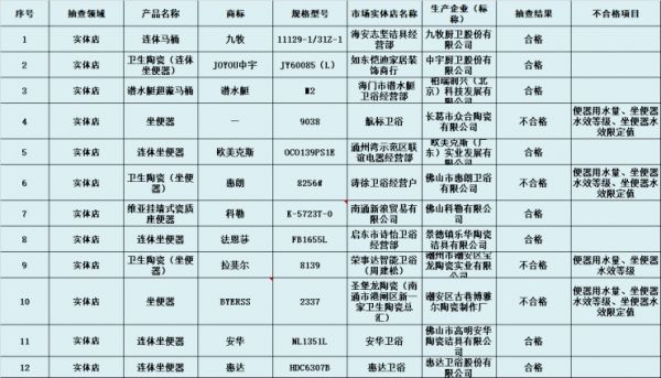 8月30日,2022年江苏省南通市市级监督抽查情况公告(第一批)公布,本次南通市市场监督管理局抽查节水坐便器共12批次,其中4批次产品不合格,不合格项目为便器用水量、坐便器水效等级、坐便器水效限定值,涉及航标、惠朗、拉斐尔和BYERSS等企业。