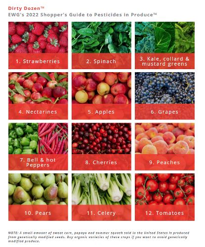 果蔬在种植过程中难免会使用农药防治虫害、病毒等,因此,农药残留一直是食品安全绕不开的话题。今年美国环境保护组织“环境工作组”(Environmental Working Group,简称EWG)公布了2022年12种最脏(Dirty Dozen,即农药残留浓度最高)蔬果清单。上榜的大多数是我们餐桌上常见的果蔬!没想到光鲜亮丽的瓜果蔬菜,竟然无时无刻埋藏着农残这一巨大的健康隐患。