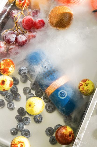 使用体验上更是省心省力,操作也很简单。由于它机身外形很小巧精致,像一颗胶囊,使用时基本不挑容器,厨房水槽、洗菜篮、玻璃碗都能兼容,清洗时只需要把它丢进去和果蔬一起清洗,静待10分钟不用看管,过程还可以去做其他事,洗完把果蔬用水冲一下就可以直接吃。