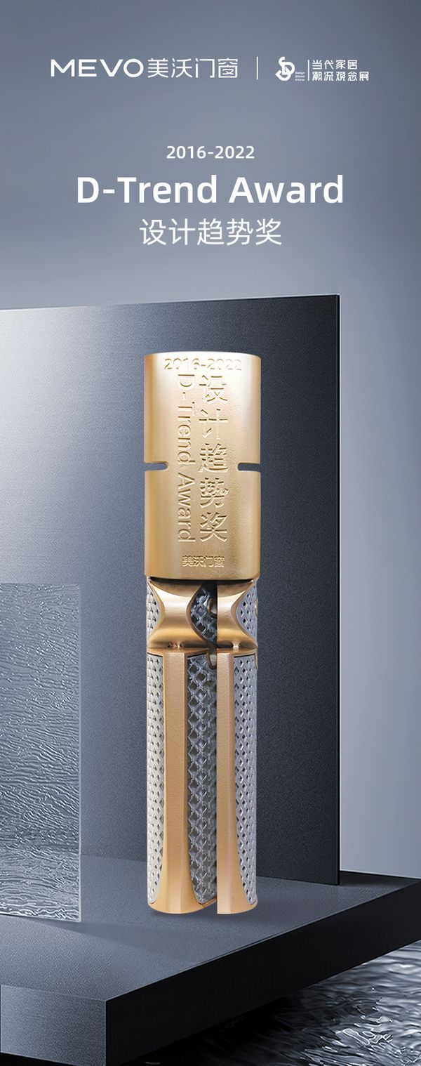 由中国家博会(上海)、中国建博会(上海)、红星美凯龙、创新设计联盟联合主办的第十二届DDS当代家居潮流观念展开幕式暨2016-2022年度颁奖仪正式启动,美沃门窗凭借创意的产品设计、卓越的品牌理念、良好的市场口碑荣获“2016-2022年度D-Trend Award设计趋势奖”。