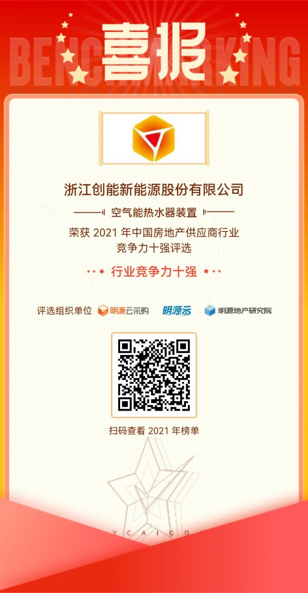 创能股份得以在本次评选中荣膺供应商行业竞争力十强(空气能热水器装置)称号,与公司长期坚持的“高品质、优服务”经营理念密不可分。作为房产配套首选供应商,创能股份一直非常注重房地产配套空气源热泵产品的开发,使其始终适应房地产行业的发展需求,并坚持将客户服务满意度放在首位,坚守合法合规经营的宗旨,围绕产品与服务精心耕耘。