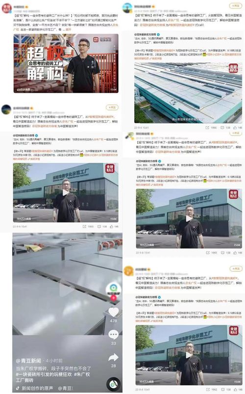随着“中国制造2025”的推进,我国在科技和创新领域的实力让中国制造业迎来了新的发展,为了探究冠珠瓷砖成为建陶行业新标杆的秘密,央视总台著名主持人朱广权与央视财经,带着好奇与期待走进冠珠数字化示范工厂。纪录片《超“权”解构——一座会思考的瓷砖工厂长什么样》正式上线。朱广权带领大家进入一个和印象中完全不一样的智能化工厂,沉浸领略创造美好生活的中国“智”造力量。纪录片一经上线,便在社交媒体平台上引发强势关注与讨论,“数智冠珠潮向美好”、“一块瓷砖引发的玩梗狂欢”等话题阅读量突破1500万,冠珠瓷砖与央视财经等多个账号的记录片播放量突破百万,引发数十余各界头部博主、权重账号的转发互动,激起了各界对于进冠珠数字化示范工厂的现象级讨论,热度高涨。