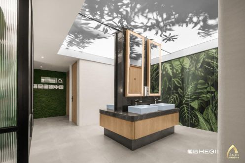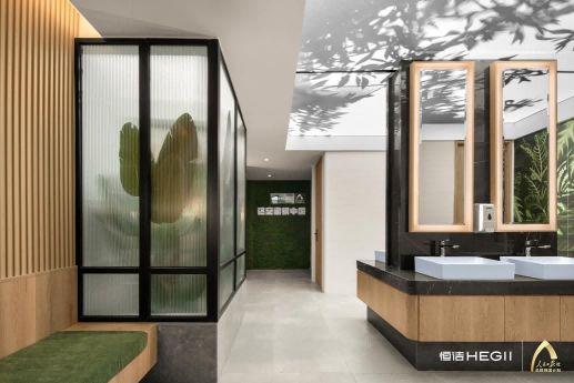 “由外而内、由浅入深”,无论是从光影交错、树影婆娑的绿色空间设计,还是因地适宜选用恒洁防水多层实木板材、智能卫浴产品的装配细节,本次公共卫生空间的改造始终将“环保可持续”的设计理念贯穿其中,提供了专业、高品质的公共卫生空间解决方案。