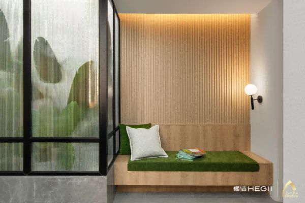 此外,恒洁在本次改造中还甄选了贴合原木纹理与色泽的高端定制卫浴柜,并出于公共卫生空间用水频繁的考虑,浴室柜、门、坐凳等区域特别选用了恒洁自主创新研发的防水多层实木板,基材防水、防潮性能优于国标4倍,可有效解决卫生间内发霉开裂等问题,构建了一套“会呼吸”的健康公共卫生环境。