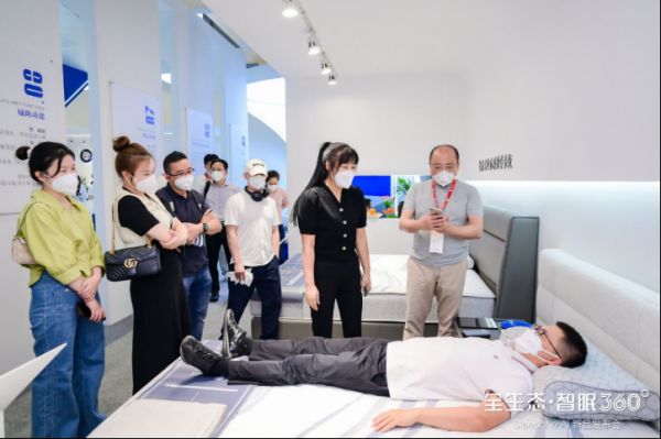 最后,在周总的带领下,与会嘉宾们亲身体验了个性化定制的360°智眠解决方案,沉浸式感受枕垫联合的深眠体验。