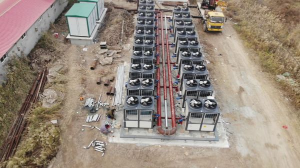 该项目设计为分区安装,不同区域独立控制,每户安装封闭阀,根据业主需求进行调节。机组安装选址在距离小区楼房20米以外的室外空地,减少对居民生活的干扰;每台中广欧特斯超低温商用两联供外机的基座都进行了加高处理,避免机器因冷凝水结冰造成损坏等现象的发生;热水连接管道采用橡塑保温棉和铝板包裹,起到防护的同时兼顾了美观,可延长机组及管道的使用寿命。