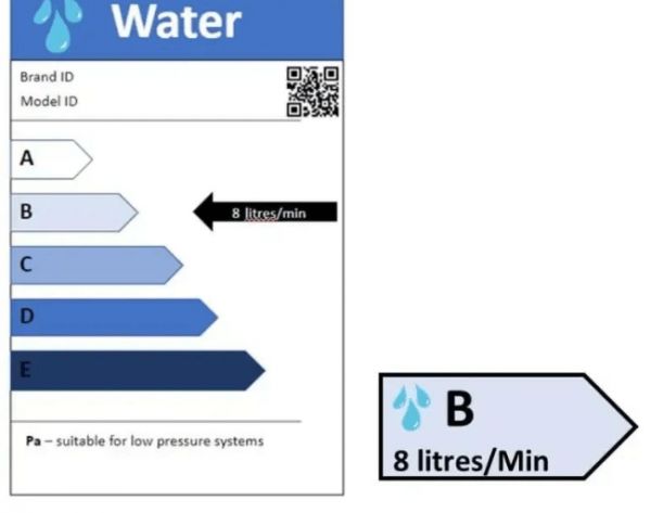 据英国媒体报道,英国拟于2024-2025年实施新的节水标识,目前正在进行为期12周的公众咨询。新的节水标识是强制性标识,届时将被要求张贴于马桶、水龙头、淋浴器、洗碗机和其他家电产品上。从公开的设计草图来看,英国强制性节水标识以A-E代表耗水等级,其中B级表示每分钟耗水8升;标识上印有品牌名称及产品型号,右侧有二维码,可查看产品详细信息。
