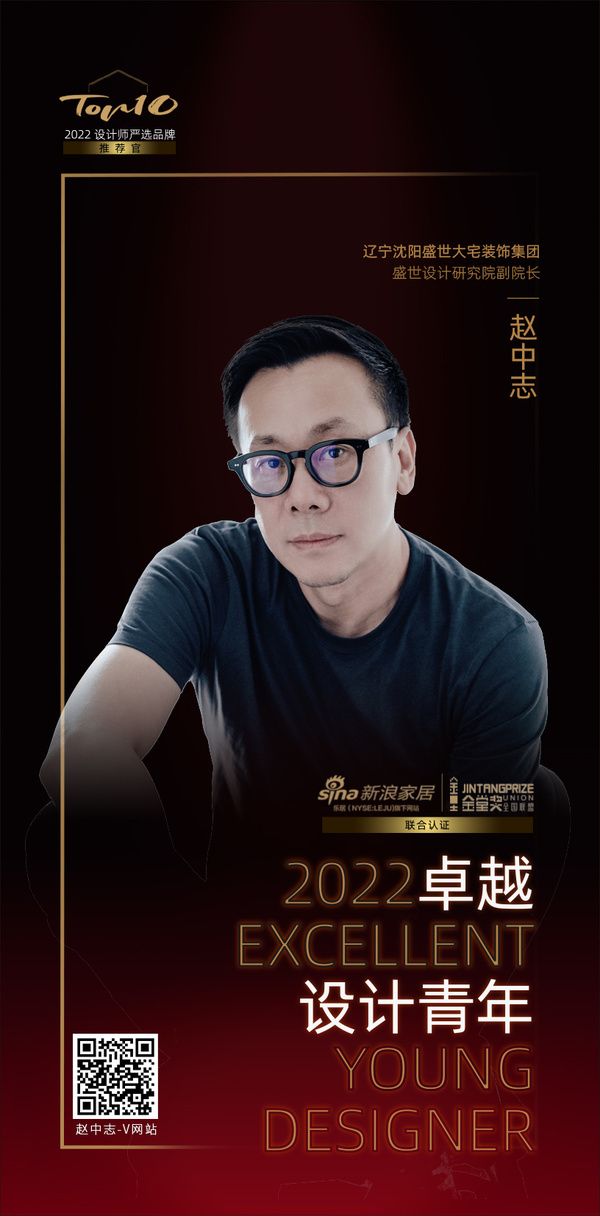 “2022卓越设计青年”由新浪家居和金堂奖全国联盟发起,是设计业界最具传播价值的年度先锋荣誉,新浪家居与金堂奖联名认证。旨在发掘和表彰室内设计领域表现卓越的杰出青年设计师。设计师赵中志荣膺“2022卓越设计青年”称号。