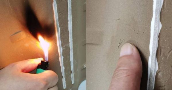原来,他家用得陶瓷瓦是单面釉的,瓦的背面涂着一层透明的胶水!肉眼根本看不出来,但是用打火机一烧,随即就能闻到一股胶臭味,而且用手轻轻一搓,居然能搓出细细的胶泥。