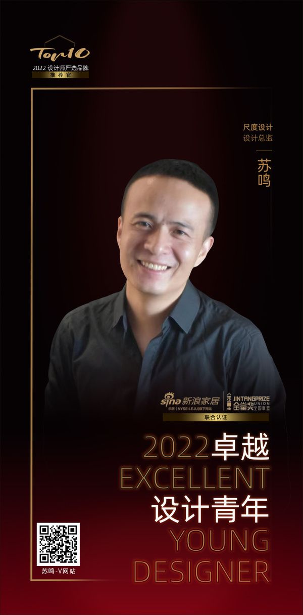 “2022卓越设计青年”由新浪家居和金堂奖全国联盟发起,是设计业界最具传播价值的年度先锋荣誉,新浪家居与金堂奖联名认证。旨在发掘和表彰室内设计领域表现卓越的杰出青年设计师。设计师苏鸣荣膺“2022卓越设计青年”称号。